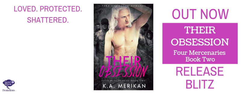 THEIR OBSESSION is a dark gay harem contemporary romance, book 2 in the “Four Mercenaries” trilogy. The story contains scenes of explicit violence, offensive language, morally ambiguous characters and lots of scorching hot, emotional, explicit scenes.